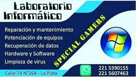 Servicio técnico de reparación, actualización y mantenimiento de equipos informáticos. Atención especial a socios del COR. Consultas al 221 5390155.